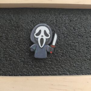 Diseño inspirado en Chucky impreso en 3D, el cual puedes elegir como Pin para decorar tu ropa o bolsos o como imán para decorar tu refrigerador.